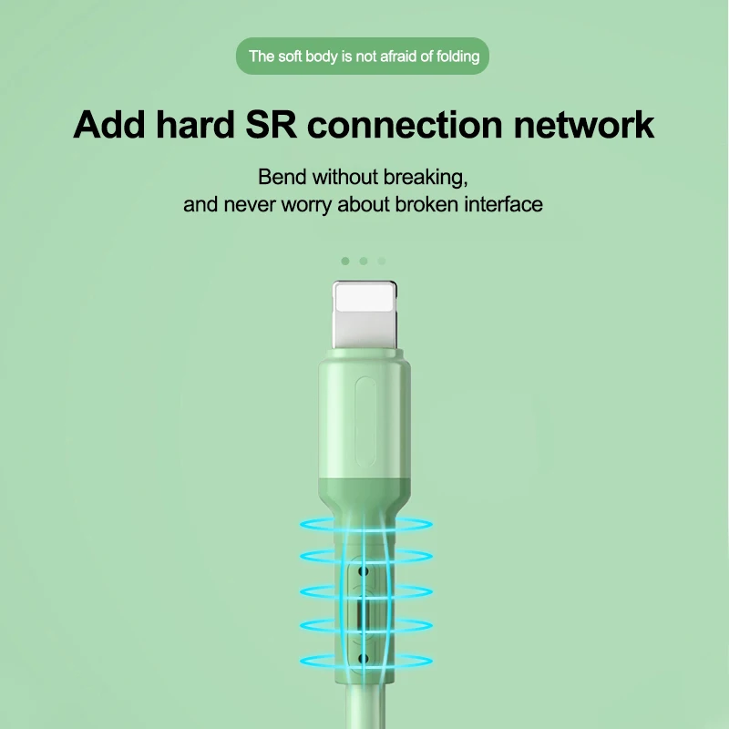 Fast charging liquid silicone iPhone cable.